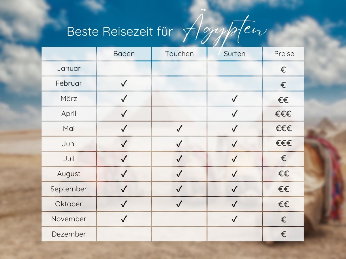 Beste Reisezeit Ägypten - Monatsübersicht