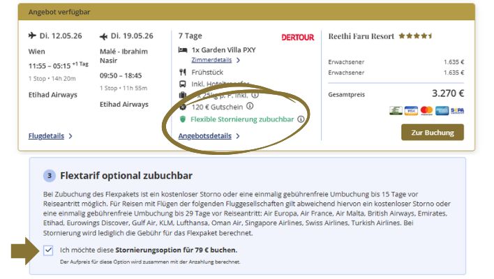 So buchen Sie ein Angebot mit flexibler Stornierung